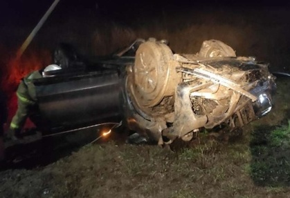 На автодороге произошло ДТП, в результате которого спасателям пришлось вырезать пострадавших из перевернувшегося автомобиля.