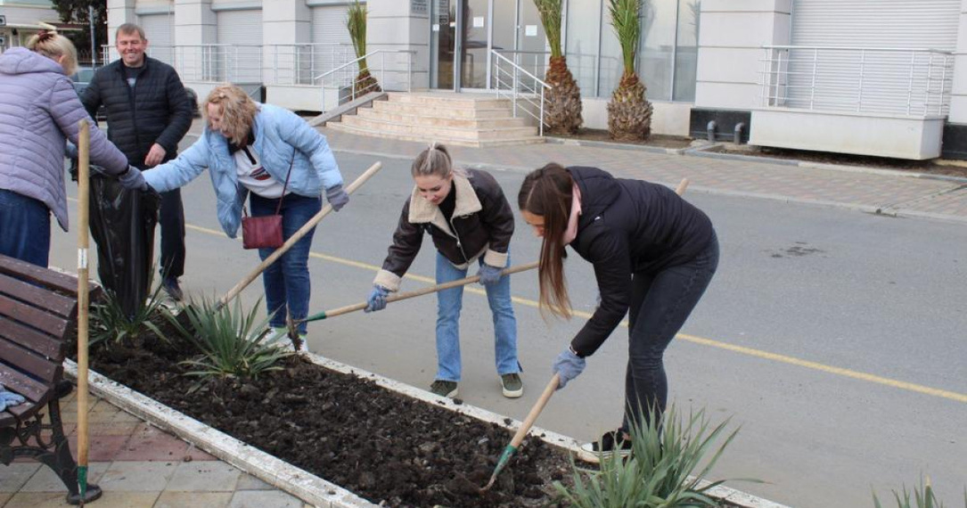 Жители Алушты вышли на субботник в честь годовщины Крымской весны, чтобы сделать город более уютным и комфортным.